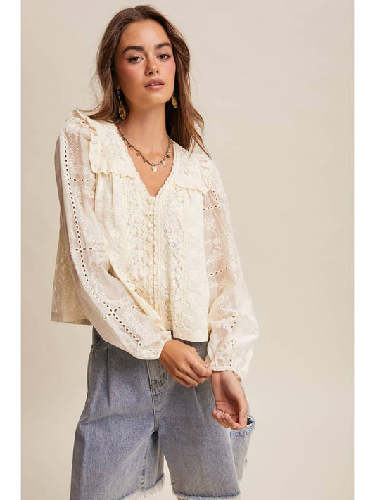 Listicle Delicate Lace Embroidered Blouse