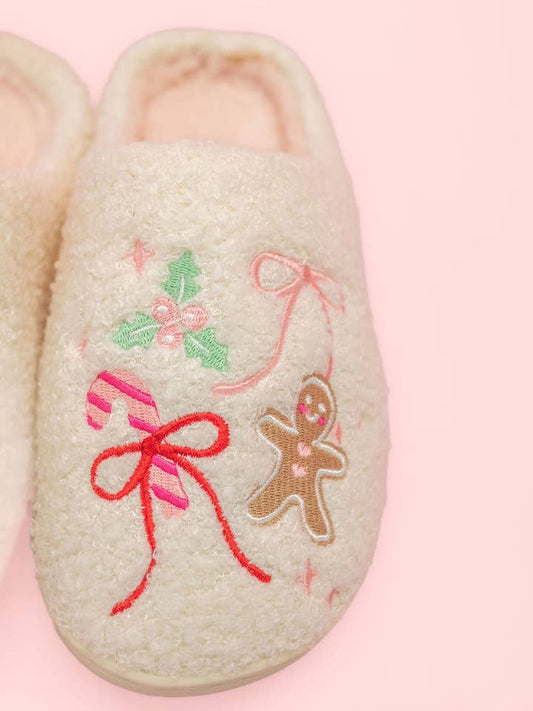 Gingerbread Bows Christmas Slippers