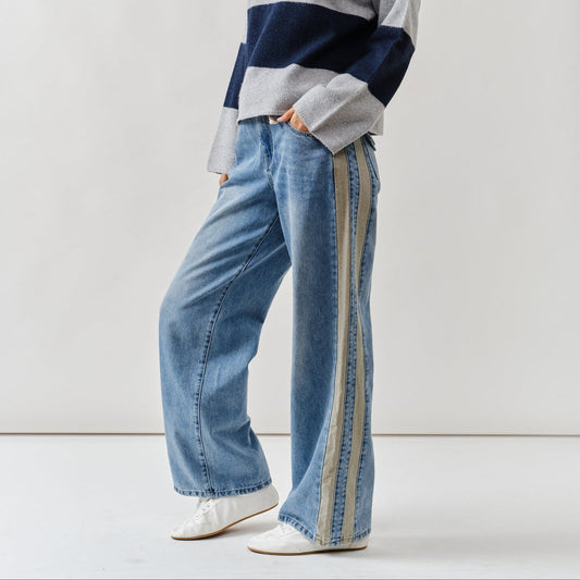 Aaron & Amber Contrast Line Slouchy Jeans