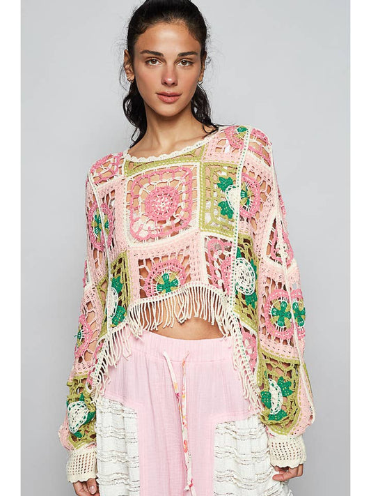 POL Long Sleeve Crochet Crop Top