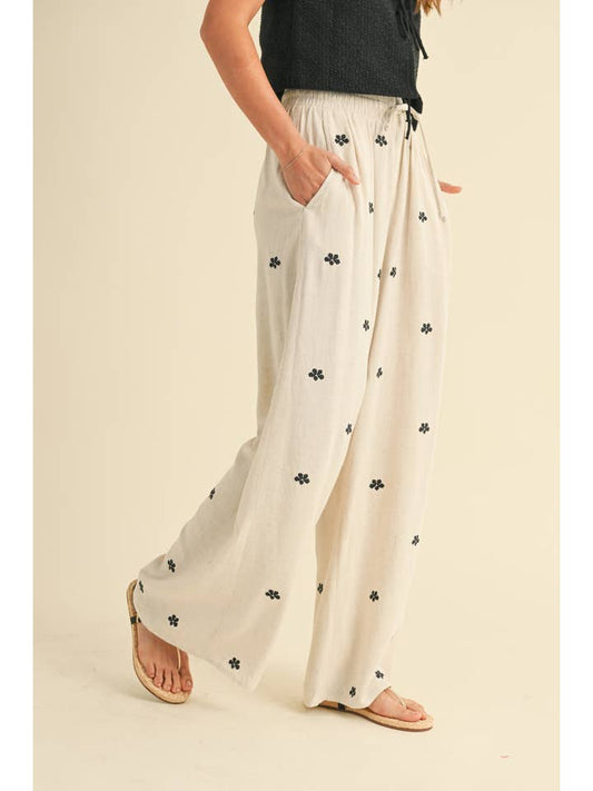 Miou Muse Embroidery Detail Linen Pants