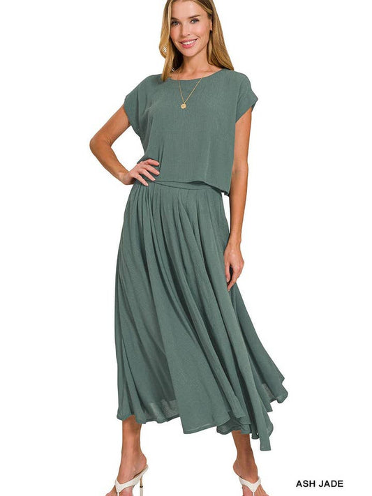 Crinkle Gauze Crop Top & Skirt Set