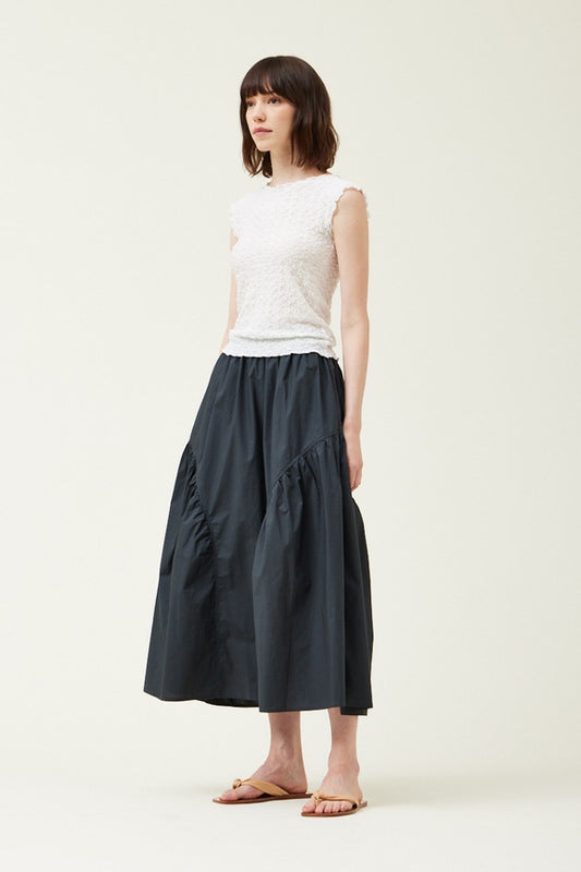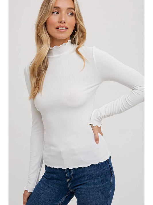 Bluivy Ribbed Knit Lettuce-Edge Mock Neck Top