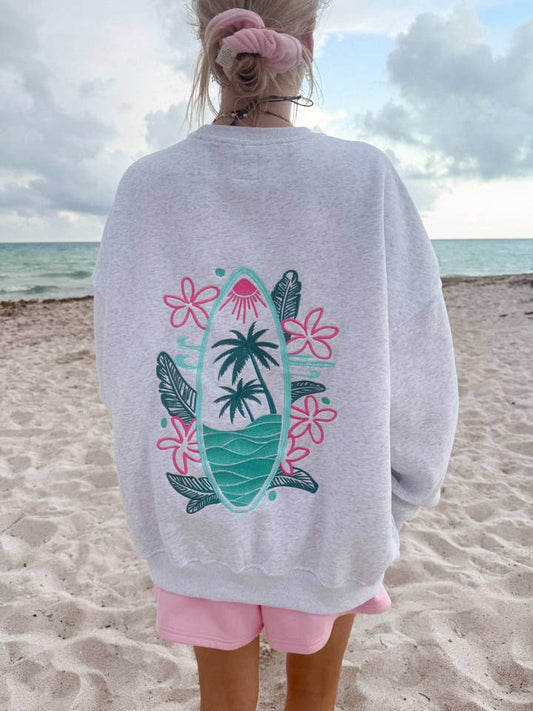 Sunkissed Coconut Surfing The Waves Embroidered Sweatshirt
