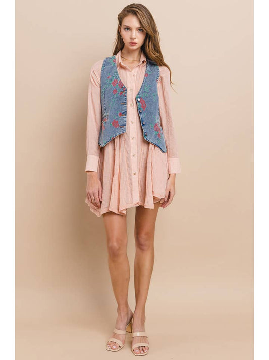 Wisteria Lane Vintage Floral Embroidered Denim Vest